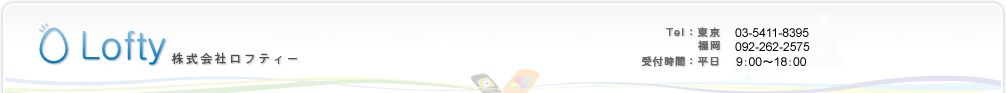 | 会社所在地 | 福岡本社 〒812-0033 福岡県福岡市博多区大博町6-19 新栄ビル4F (地図) TEL:092-262-2575 FAX:092-262-2576 東京支社 〒106-0032 東京都港区六本木6-8-10 STEP六本木ビルWEST TEL:03-5411-8395 FAX:03-5411-7485 |